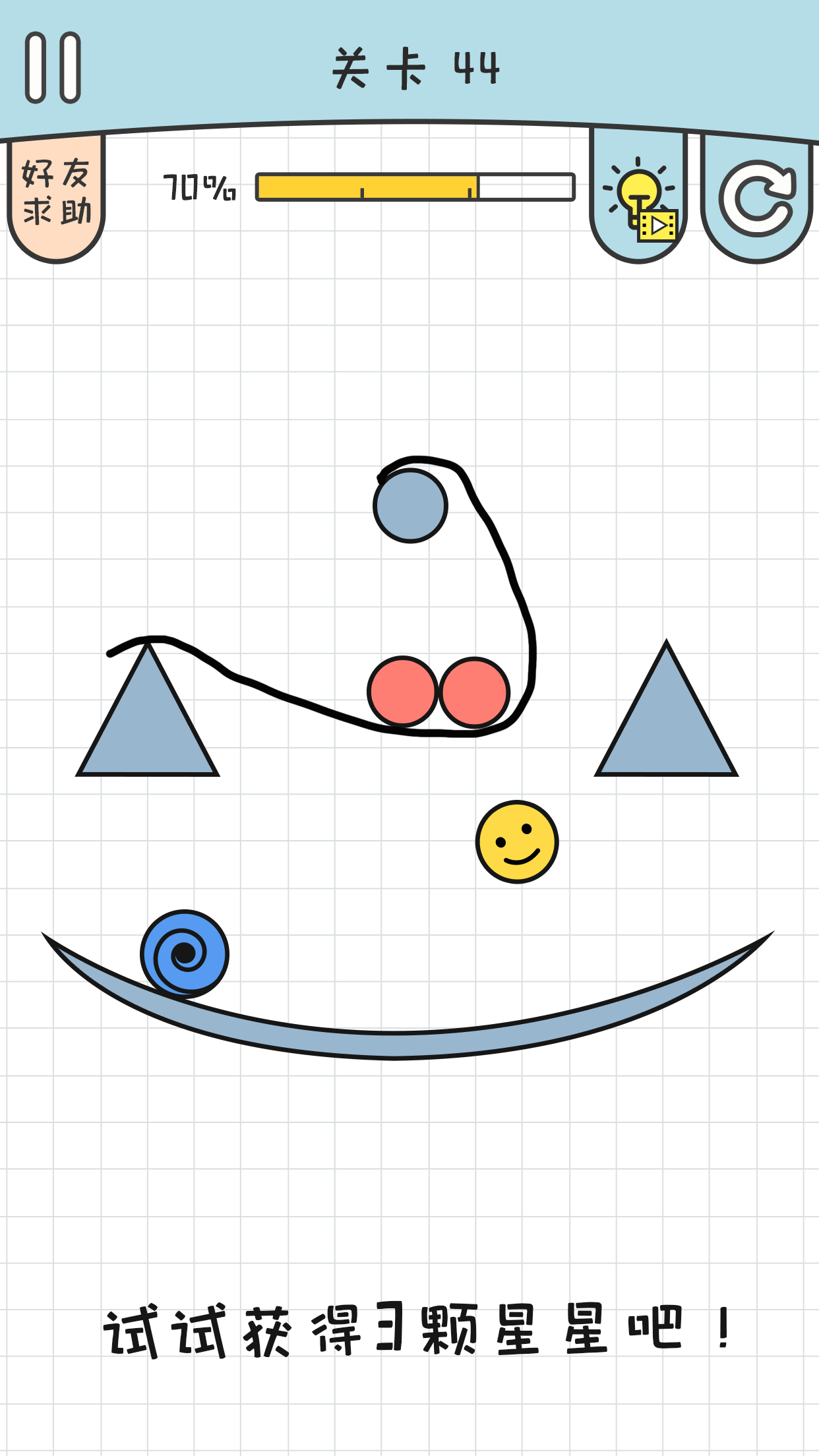 2.掉落的线触碰小球让小球移动:精确的物理模拟系统确保每次碰撞都符合现实规律,小球会根据受力大小和方向产生相应运动轨迹,玩家需要预判多物体连锁反应