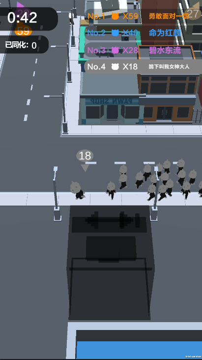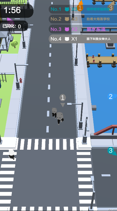 玩家需要操控带有颜色标识的角色,通过接触白色小人将其转化为自己的追随者。随着队伍规模扩大,你的领导力将不断提升,最终目标是成为城市中最强大的势力。游戏采用即时对抗机制,当两支不同颜色的队伍相遇时,人数占优的一方会自动吸收对方成员。这种简单直观的玩法规则背后,隐藏着丰富的策略空间,你需要合理规划移动路线,既要主动出击又要避免以少敌多。通过不断积累优势,最终在限定时间内成为城市霸主,赢得比赛胜利。现在就加入这场充满欢乐的都市大乱斗,带领你的追随者登上王者宝座吧!