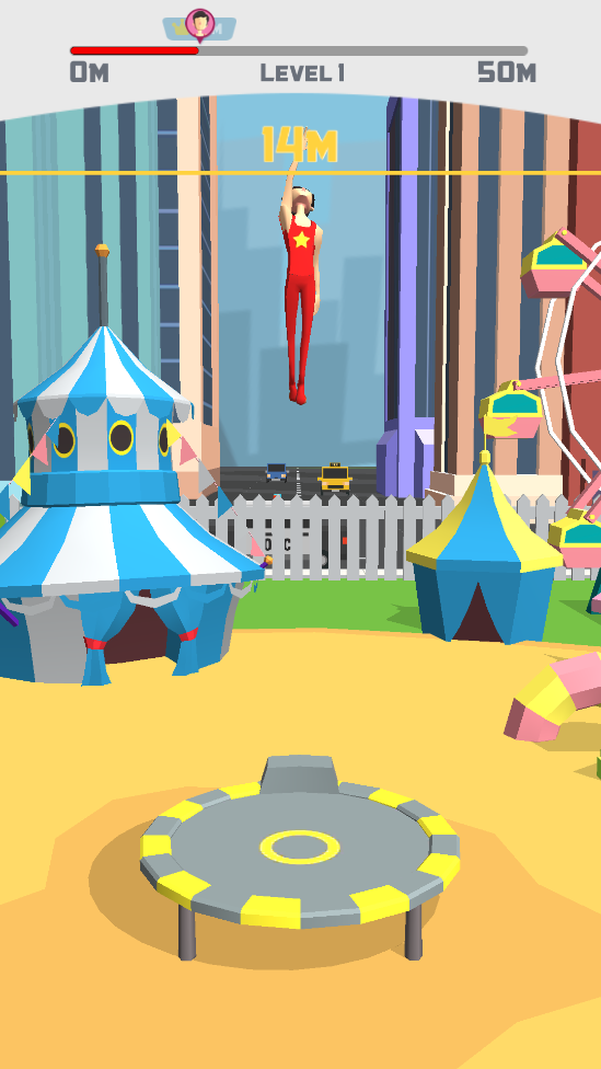 《超级蹦床明星》是一款充满乐趣的休闲手游,采用简约明快的画风设计,搭配令人上瘾的蹦跳玩法。游戏中准备了丰富的加成道具和惊喜奖励,让每一次跳跃都充满变数与乐趣。玩家需要控制角色在蹦床上不断弹跳,挑战自己的反应极限,向着更高的天空发起冲击。无论是想打发碎片时间,还是渴望冲击全球排行榜,这款游戏都能带来十足的欢乐体验。