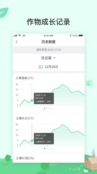 5、拥有智能设备监测版块,用户可以清晰看到各设备监测到的数据信息,了解地块环境;监测数据会以地图、图表等多种形式展示,支持自定义时间段查询。用户可以设置数据对比功能,比较不同地块或不同时期的环境差异,找出影响产量的关键因素。