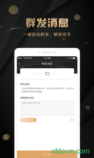 最新v3.2.1版本新增智能客服机器人功能,可自动回复常见咨询问题。优化消息群发引擎,发送速度提升40%。修复部分机型水印显示异常问题,增强系统稳定性。新增12套节日营销模板,即将上线客户分层管理系统和竞品分析模块。