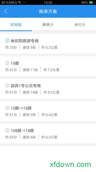 3.查询所需公交线路,系统将提供多种换乘方案供选择;