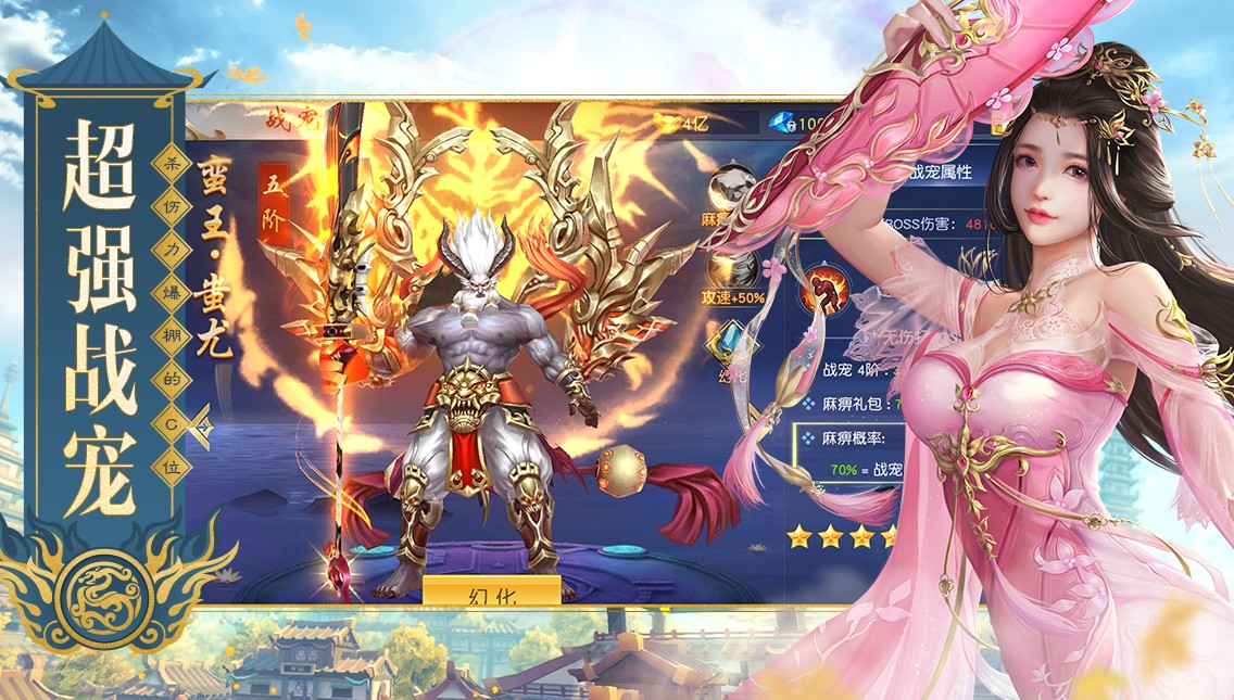 灵宠系统突破简单的属性加成,每只战宠都拥有独立的技能树和进化路线。通过"血脉觉醒"玩法,普通灵兽可进化为上古神兽,觉醒专属必杀技。高阶战宠更能施展组合技,与主人形成完美的战斗配合。