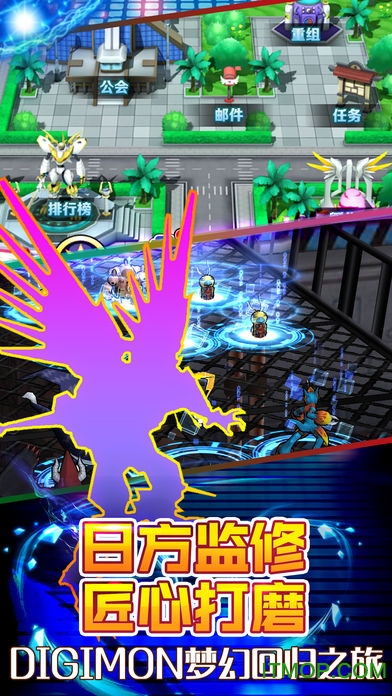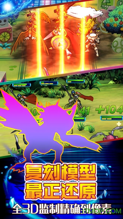 游戏内的3D模型制作耗时超过3000小时,每一只数码兽都经过数十次修改调整,连毛发纹理和技能特效都力求完美还原。配图方面,开发团队参考了上万张动画原画,确保场景和角色的色彩搭配与动画保持一致。关卡设计融合了原作经典剧情和全新创意,让玩家在重温经典的同时也能感受到新鲜感。