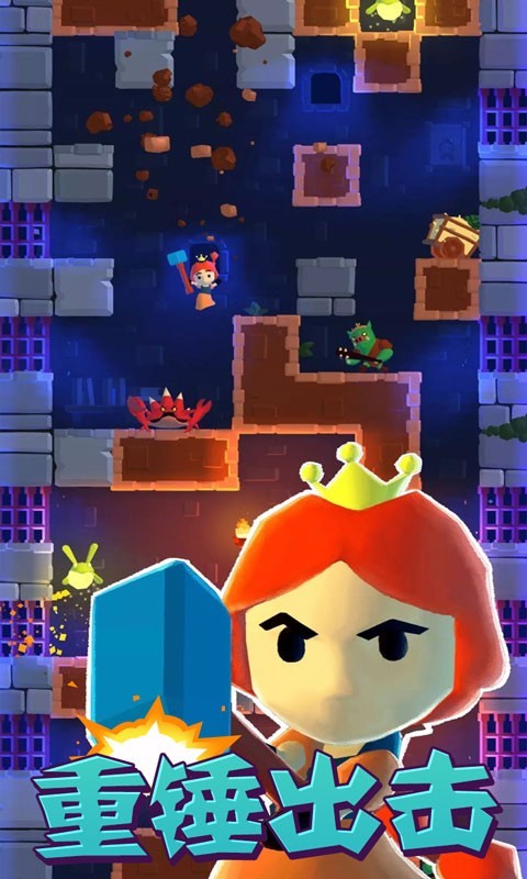 游戏的核心玩法围绕着挖掘、战斗和策略展开。玩家需要控制公主使用各种工具向下挖掘,同时要应对随时可能出现的怪物袭击。游戏中的怪物各具特色:萤火飞虫虽然不会移动,但会阻挡前进路线;兽人战士会主动追击玩家;沉睡的野猪一旦被惊醒就会发动猛烈冲锋;而塔壁上的蜘蛛则以惊人的速度移动。面对这些敌人,玩家需要灵活运用武器和地形优势,有些怪物需要正面击败,有些则需要巧妙避开。随着关卡深入,玩家还能解锁更多强力武器和特殊技能,让逃亡之旅更加丰富多彩。