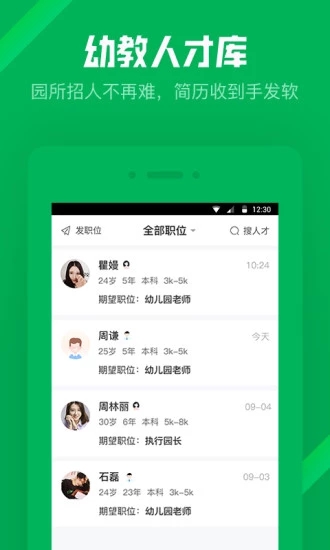 园所直聘APP是一款专为幼教行业打造的求职招聘平台,致力于为幼教从业者和园所搭建高效沟通的桥梁。在这里,您可以轻松浏览海量优质幼教岗位,包括幼师、园长、保育员等多种职位,精准匹配您的求职需求。同时,APP还提供丰富的幼教课程资源,涵盖园所管理、教学技能提升等内容,帮助幼教从业者持续提升专业能力。无论是求职者还是招聘方,都能在这里获得便捷、高效的服务体验,助力幼教事业更好发展。