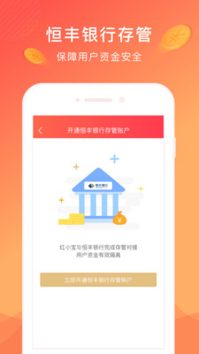 红小宝APP是由红上金融信息服务(上海)有限公司精心打造的一款互联网金融投资理财平台,由恒丰银行提供资金存管服务,确保用户资金安全无忧。平台以合规运营、真诚透明、稳健规范为核心特色,致力于为用户提供安全、专业、高效的信用借款咨询和理财服务。其团队由金融服务、风险管理及电子商务等领域的专业人士组成,通过严格的风控体系和优质资产筛选,为用户创造稳健收益。此外,红小宝还提供贴心的客服支持和多重安全保障,全方位满足用户的财富管理需求。