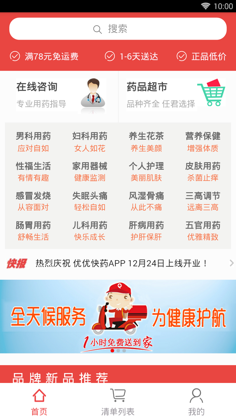 优优快药是一款专业的线上购药平台APP,致力于为用户提供便捷高效的药品购买体验。无论何时何地,只需动动手指就能轻松下单,专业骑手24小时全天候配送,确保药品快速送达您的手中。平台严格把控药品质量,所有商品均来自正规药店,保证正品且日期新鲜。此外,我们还经常推出各种优惠活动,让您在享受便利服务的同时还能省钱。快来下载体验,让优优快药成为您贴心的健康助手吧!