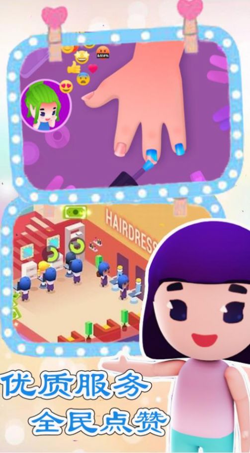 《超级美容店》是一款充满少女心的模拟经营游戏,玩家将化身为美容店老板,在精致的卡通世界中打造属于自己的美容帝国。游戏采用轻松治愈的美式画风,搭配丰富多样的装扮玩法,从发型设计到整体造型,让每位顾客焕发独特魅力。无论是想要放松解压,还是体验经营乐趣,这款游戏都能满足你的需求。简单易上手的操作配合创意十足的美容系统,带来沉浸式的互动体验,快来开启你的美容店创业之旅吧!