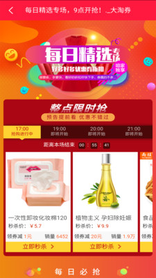 5、各种抢购活动,让您买得起。每日10点/20点准时开启限时秒杀,爆款商品低至1折起,更有整点红包雨、分享得券等互动玩法。
