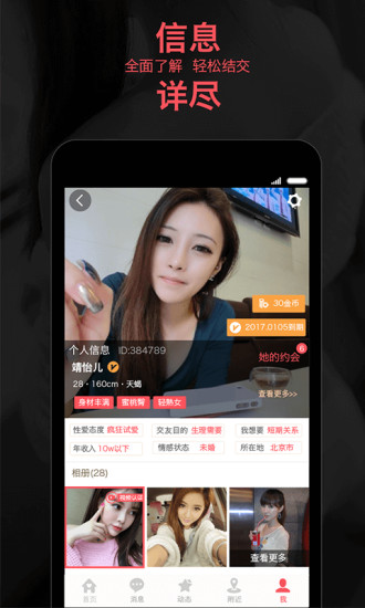 2、【高颜值美女】平台汇聚各行业精英女性,包括职场白领、时尚达人等。严格的照片审核机制杜绝虚假信息,让您看到的每一张照片都真实可靠。智能匹配系统帮助您找到最合适的约会对象。