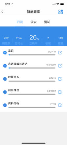 4、与公务员考试时间轴匹配基础、强化、冲刺、模考训练题库:根据考试时间节点智能推送相应阶段的练习内容,科学规划备考进度。