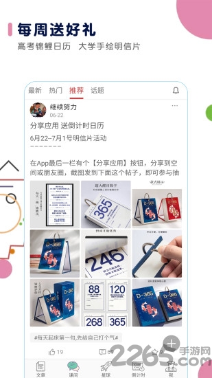 高考中考倒计时是一款功能强大的时间管理应用,专为学生和注重生活仪式感的用户设计。它不仅提供精准的高考、中考倒计时功能,还能帮助用户记录生命中的重要时刻。通过直观的界面和智能提醒,用户可以随时掌握各类倒计时状态,合理安排学习计划和生活日程。无论是备考冲刺还是纪念日规划,这款软件都能成为您贴心的时光助手,让每一天都过得更有意义。