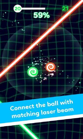 《球VS激光》是一款风靡全网的休闲躲避类手游,凭借其简单易上手却又极具挑战性的玩法吸引了大量玩家。在游戏中,玩家需要灵活操控小球,在错综复杂的激光迷宫中穿梭,避开各种颜色的致命光束和其他移动的小球。游戏采用简约清新的画面风格,搭配动感十足的音效,带来沉浸式的游戏体验。上百个精心设计的关卡等待玩家挑战,每一关都考验着玩家的反应速度和操作技巧。你还可以解锁各种炫酷的皮肤和特效,在朋友圈秀出你的高分操作,成为众人羡慕的游戏达人!