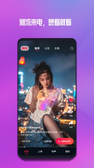 炫目来电秀是一款集来电视频与手机壁纸美化于一体的多功能应用,为用户提供丰富多样的素材选择。从清新简约到酷炫动感,从卡通动漫到真人实拍,各类风格应有尽有。应用界面设计简洁直观,操作流畅易上手,即使是初次使用的用户也能快速掌握。通过智能推荐系统,软件会根据你的使用习惯推送可能感兴趣的素材。此外,应用还支持多种自定义设置,让你轻松打造专属来电秀,成为朋友圈中的时尚达人。