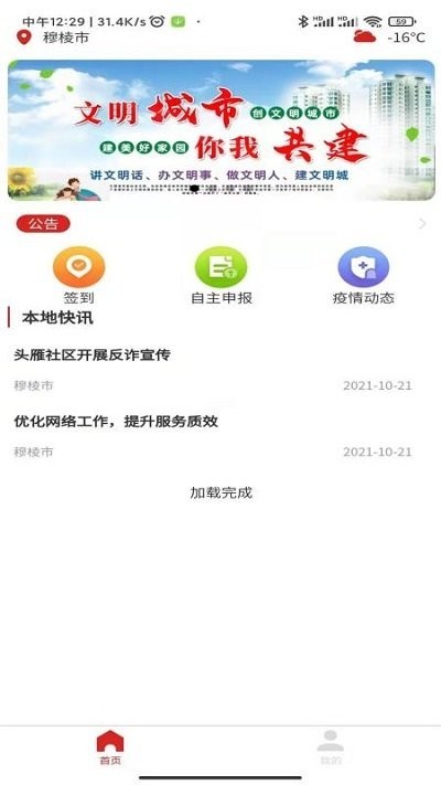穆棱马上办APP由穆棱市城乡社区工作局精心打造,是一款集政务服务和便民功能于一体的智能平台。用户可通过手机完成个人信息注册、登录认证等基础操作,还能实时上报个人健康信息,参与社区签到打卡。软件提供权威的公告信息发布渠道,确保市民第一时间获取重要通知。同时整合了社区安全预警、精准天气预报等实用功能,让城市服务触手可及。目前软件仍在持续优化升级,更多便民功能将陆续上线,为用户带来更优质的服务体验。