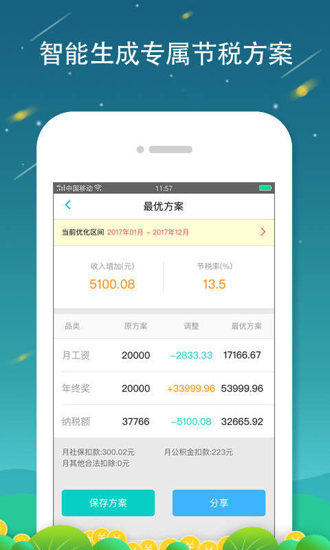 【个税优化】:通过智能分析用户薪资结构,生成个性化的节税方案,例如捐赠节税等,帮助用户合法减少税务负担。