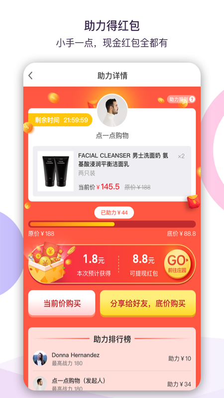 3、点一点商城创新性地将社交元素融入电商体验,结合时下趋势打造全新的社交电商模式。平台不仅提供低价优品,还设计了助力得红包、好友互动等趣味玩法。未来还将加入更多游戏化元素,如限时秒杀、拼团砍价等互动玩法,让用户在追求实惠的同时也能体验社交乐趣。这种创新的商业模式为传统电商注入了新的活力,重新定义了网购体验。