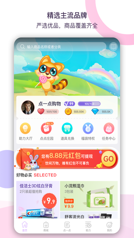 《点一点购物》是一款全方位覆盖生活需求的优质购物软件,致力于为用户打造便捷、高效的购物体验。在这里,你可以轻松浏览海量商品,从时尚新品到日常必需品,应有尽有。软件不仅提供丰富的商品选择,还通过智能推荐系统,帮助你快速发现心仪好物。无论是追求潮流还是满足日常需求,点一点购物都能让你第一时间买到喜欢的东西。更令人惊喜的是,用户还能通过完成简单任务赚取购物金币,实现轻松购物的同时还能省钱。快来下载体验,开启你的智能购物之旅吧!