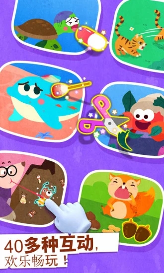 【宝宝动物世界】包含六大特色板块:在"海洋医生"模式中,孩子能解锁20多种救助技能,使用听诊器、绷带等专业工具;【动物乐园】汇集200+种动物,从可爱的海豚到威猛的东北虎,每种动物都有专属介绍和趣味动画;【救助海洋动物】设计30多个互动场景,如帮珍珠贝取异物、为小丑鱼消毒伤口等;【森林冒险】设置10个探索关卡,观察老虎捕猎、协助啄木鸟治树;【动物科普】包含500+条百科知识,通过问答形式巩固学习;【贴纸系统】提供100+张可收集贴纸,激励孩子完成各项任务。