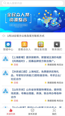 全民众人帮app为用户提供了一个全方位的资源对接平台。无论您拥有线上还是线下资源,都可以在这里自由发布,包括商务合作、推广渠道等各类需求。平台致力于打造一个开放共赢的生态环境,让个人用户和企业都能找到合适的合作伙伴。通过资源共享和优势互补,帮助用户实现个人价值提升和企业业务拓展,创造更多商业机会。