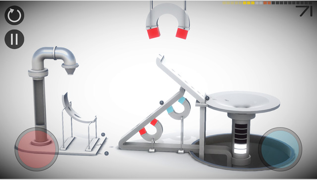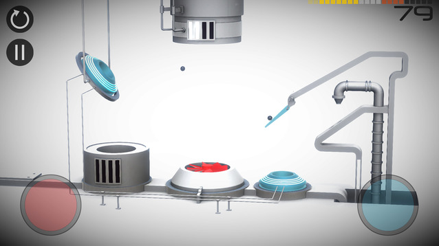 游戏核心玩法类似多米诺骨牌的连锁反应,玩家需要通过钢球的动力传导激活整个机械系统。与童年弹珠游戏不同,本作采用横向视角展开,包含数十种精密机关如电磁板、弹力带等。每个关卡都需要玩家观察装置结构,计算小球运动轨迹,适时点击红蓝按钮控制机关运作。特别设计的物理引擎让每次碰撞都真实可预测,而简约的灰白主色调能有效降低视觉干扰,让玩家更专注于解谜过程。随着关卡推进,还会解锁传送门、反重力场等特殊装置。