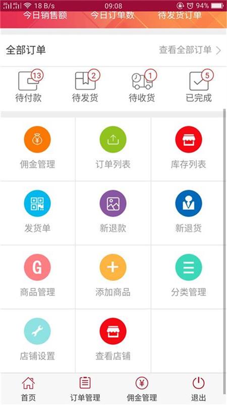 佣金管理功能可详细记录每笔交易的佣金明细,帮助商家精准核算利润。订单列表实时更新,支持按时间、状态等多维度筛选查询。库存管理模块能自动预警低库存商品,避免断货风险。发货单管理简化了物流流程,新退款、新退货功能确保售后问题及时处理。商品管理支持批量操作,分类管理让商品展示更有条理。店铺设置包含基础信息维护,查看店铺功能可预览店铺在客户端的展示效果。
