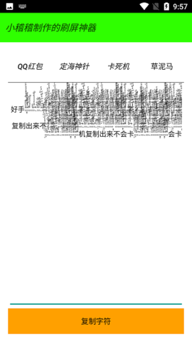 刷屏神器手机版是一款专为恶搞爱好者设计的趣味工具,内置"定海神针"、"草泥马"、"卡死机"等预设文本模板。用户只需一键复制这些内容,就能在QQ等社交平台上制造刷屏效果,让好友的手机瞬间被消息淹没。该工具采用特殊算法实现高速刷屏,虽然会让对方设备出现明显卡顿,但完全不会影响发送方的手机性能。需要注意的是,为避免引起不必要的误会,建议仅在关系亲密的好友间使用,切勿用于恶意骚扰或商业推广等场景。