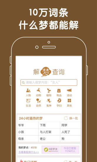 5、分类检索功能,将梦境系统分为人物类、动物类、植物类等十余个大类,每个大类下又细分多个小类。这种层级分明的分类方式让用户可以快速定位到相关解梦内容。特别是针对孕妇、学生等特殊人群,还设有专属分类,提供更具针对性的解梦服务。