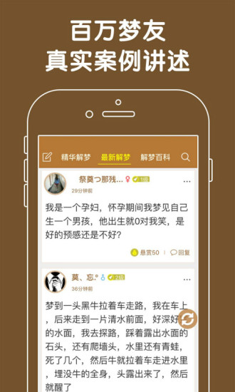 2、交流区,这里是解梦爱好者的聚集地。用户可以在这里分享自己的梦境,寻求专业解析;也可以为他人解梦,交流心得体会。社区氛围友好活跃,既有普通用户的真实梦境分享,也有解梦达人的专业分析。通过互动交流,用户可以更深入地理解梦境含义,还能结识志同道合的朋友。