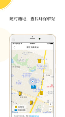 4)手机查找回收箱:内置智能地图功能可实时显示周边回收箱位置,并根据当前位置规划最优路线,帮助用户快速找到最近的投放点。
