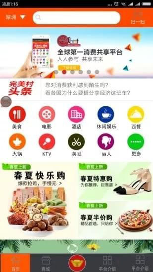 完美村APP是一款基于共享经济模式的创新购物平台,通过用户参与和分享机制,让每位用户都能成为平台的受益者。平台会根据用户的活跃度和贡献值,将每日盈利以分红形式分配给参与者。作为O2O消费共享商城,完美村致力于帮助传统实体店铺实现数字化转型,涵盖线上商城、线下商圈、商家联盟及扫码支付等核心板块。线上商城提供全国包邮的快消品,线下则覆盖餐饮、娱乐、美容等实体服务,真正实现流量与收益的双重共享,为用户和商家创造更多价值。