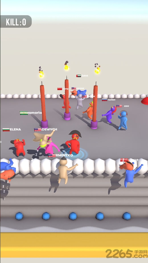 3、核心玩法围绕物理对抗展开,你可以灵活运用场景道具打晕对手,然后抓住机会将他们扔出战场;