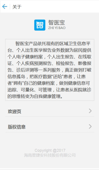 1、智医宝产品依托现有的区域卫生信息平台、个人出生医学报告业务数据为居民提供个人电子健康档案,个人出生报告、在线取证、个人疾病预测报告、检验报告、影像报告、诊后评测等一系列服务。这些功能不仅覆盖了基础医疗需求,还能通过数据分析为用户提供个性化的健康建议,让医疗信息真正服务于个人健康管理。