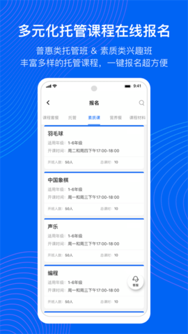 家长可以通过今托管2025官方版app自由选择适合孩子的托管服务,包括托管时段(如午托、晚托等)、课程内容及餐食选项。平台支持一键报名与在线支付,操作简单快捷。所有报名费用均由银保监会严格监管,确保资金安全无忧。此外,平台还为每位校内托管学生购买保险,让家长、学校及学生都能安心托付。无论是课程选择还是费用支付,平台都提供透明化服务,让家长全程掌握托管动态。