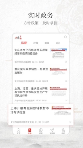 文旅中国正式版APP是一款集新闻资讯、文化旅游服务于一体的综合性平台。作为权威的官方信息发布渠道,该软件每日更新海量新闻内容和精彩短视频,为用户提供专业可靠的信息服务。无论是关注时事热点,还是探索文旅资讯,都能在这里找到丰富内容。软件整合了旅游预订、文化交流、政务信息等多元功能,通过智能推荐系统为用户精准匹配感兴趣的内容,打造便捷高效的一站式文旅体验平台。