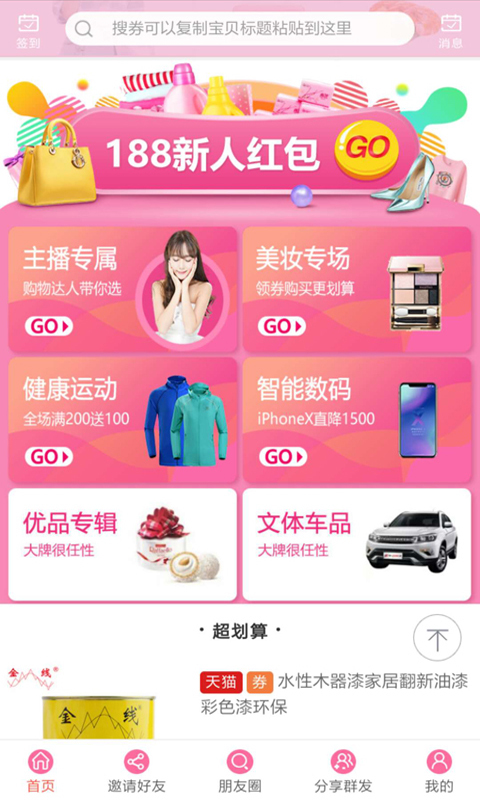 甜心街作为专业的搜券神器,汇集了淘宝、天猫等电商平台的内部优惠券,帮助用户以最低价格购买心仪商品。平台每日精选上千款超值折扣商品,包括9.9包邮专区、1折特卖会场等超值优惠活动。通过智能算法精准匹配用户需求,让您不错过任何省钱机会。无论是日常购物还是节日大促,都能享受天天双11的购物体验。一站式购物平台让比价、领券、下单更便捷,新人注册即可领取188元大红包,开启您的省钱之旅!