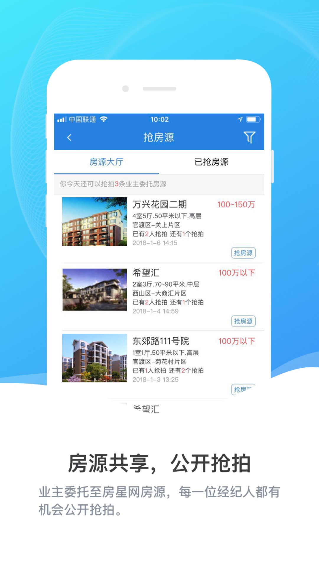 业主委托至房星网的优质房源,平台采用共享机制,每位经纪人都有平等机会参与公开抢拍,扩大业务范围,增加成交机会。