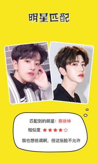 找到与你长得像的明星,或许你也有明星脸,快来看看你更像谁吧。系统会从数千位明星中找出与你最相似的几位,让你发现自己的明星相。