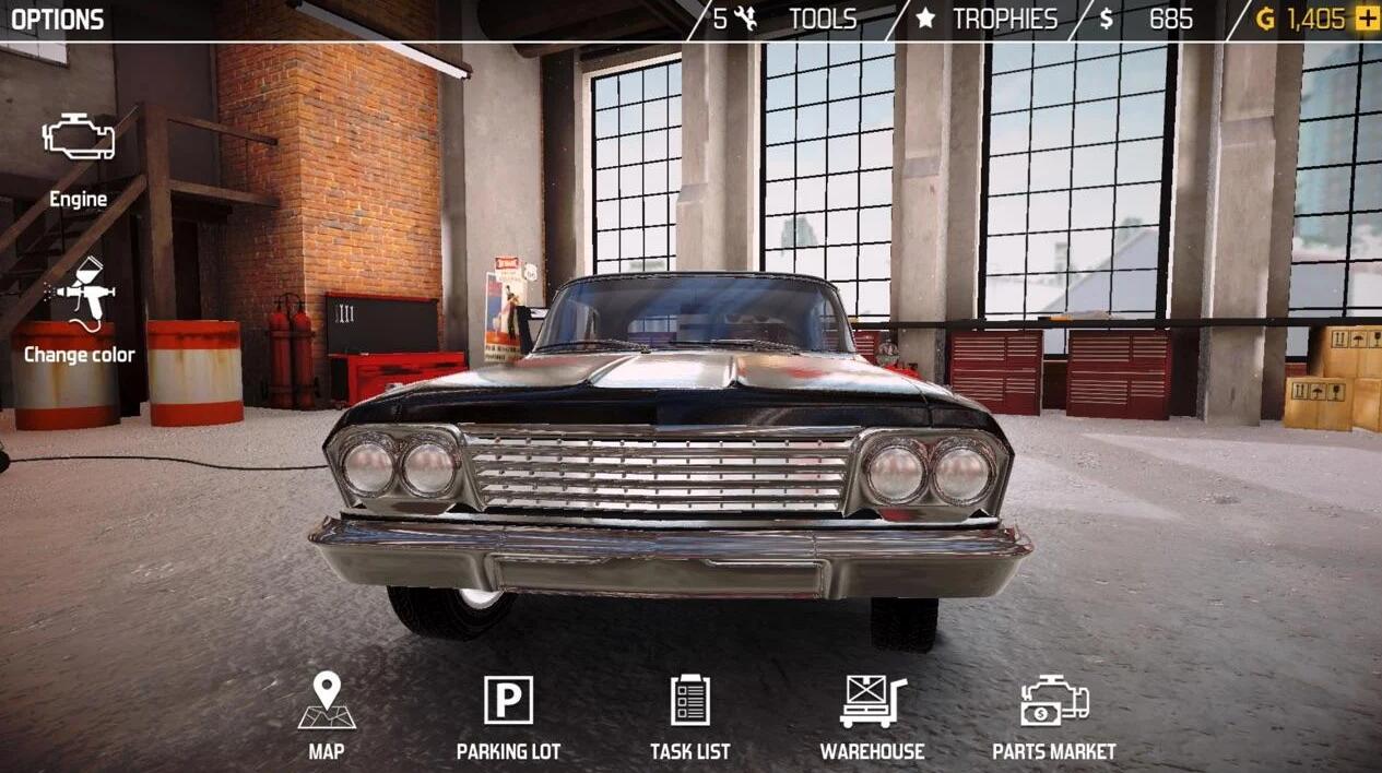- 提供日常保养、事故车修复、性能改装等30余种任务类型,每个任务都配有详细背景故事;- 超过500种可更换零件,从火花塞到变速箱都能自由拆装,支持旧件翻新再利用;- 完善的技能成长体系,维修不同品牌车辆能解锁专属工具和技术;- 需要考取电动车、重型机械等特殊维修执照来拓展业务范围;- 定期更新限定任务,完成可获得稀有涂装和复古零件等珍贵奖励。