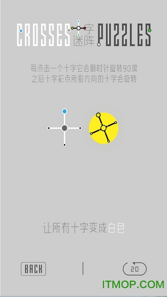 游戏采用极简主义设计风格,画面干净利落,让玩家能专注于解谜本身。核心玩法只需认准一个十字进行点击,通过连锁效应将所有十字转换成目标颜色。但看似简单的操作背后,是牵一发而动全身的精妙设计,一招之失就可能全盘皆变。随着十字数量的上升,轻轻一点就能引发超出想象的连锁反应,有时会让玩家陷入长考。这种简约而不简单的设计理念,让游戏既容易上手又充满深度挑战。