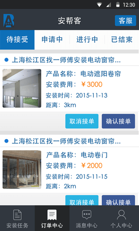 安帮客师傅端是一款专为装修师傅打造的便捷服务类手机应用,致力于为家居建材行业的安装人员提供智能化接单解决方案。通过这款软件,师傅们可以实时查看已接收的订单详情,利用精准的定位功能快速查找周边区域的装修委托,轻松申请合适的项目。该应用采用移动互联网技术,有效连接安装人员与用户需求,实现就近服务,既帮助商家降低运营成本,又能为用户提供更高效、更可靠的服务体验。现在就下载体验,开启您的智能接单之旅!