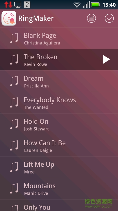 5.简单易用的设置界面,支持一键设置来电铃声、彩铃、短信提示音和闹钟铃声。