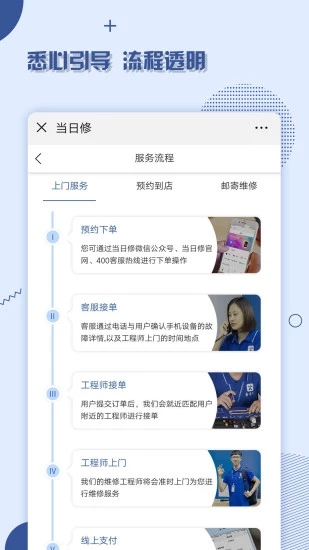 当日修app是一款专注于手机维修服务的便捷应用,为用户提供高效、可靠的维修解决方案。无论是屏幕碎裂、电池老化、系统故障还是其他各类手机问题,都能通过这款软件快速解决。用户可选择上门维修、到店服务或邮寄维修等多种方式,享受专业工程师的优质服务。维修过程全程录像,配件采用原厂品质,确保透明可靠。当日修app以"高质、高效、高水平"为服务宗旨,致力于为用户提供最放心的手机维修体验。