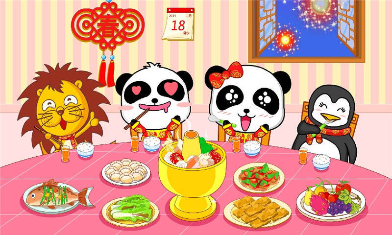 【趣味年夜饭】游戏中的年夜饭场景设计独具匠心,包含20多种中国传统美食。小朋友可以自由搭配菜品,学习餐桌礼仪,还能了解每道菜的美好寓意。互动环节中,小朋友需要帮助小动物们夹菜、倒饮料,培养分享意识。系统会根据小朋友的选择给出营养搭配建议,在游戏中渗透健康饮食理念。