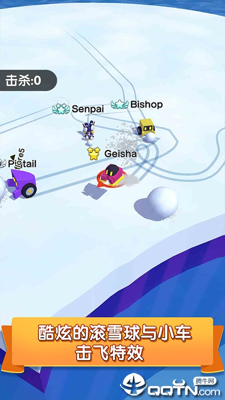 4、酷炫的滚雪球与小车击飞特效,带来震撼的视觉冲击与爽快打击感