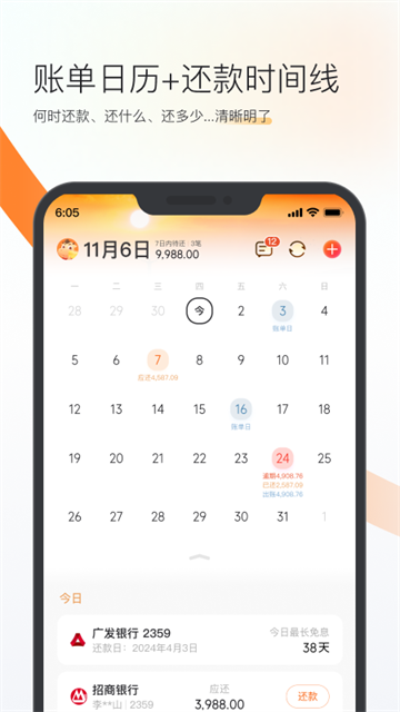 3、还款提醒服务:实时监控所有信用卡的还款日期,提前发送还款提醒,避免逾期产生额外费用