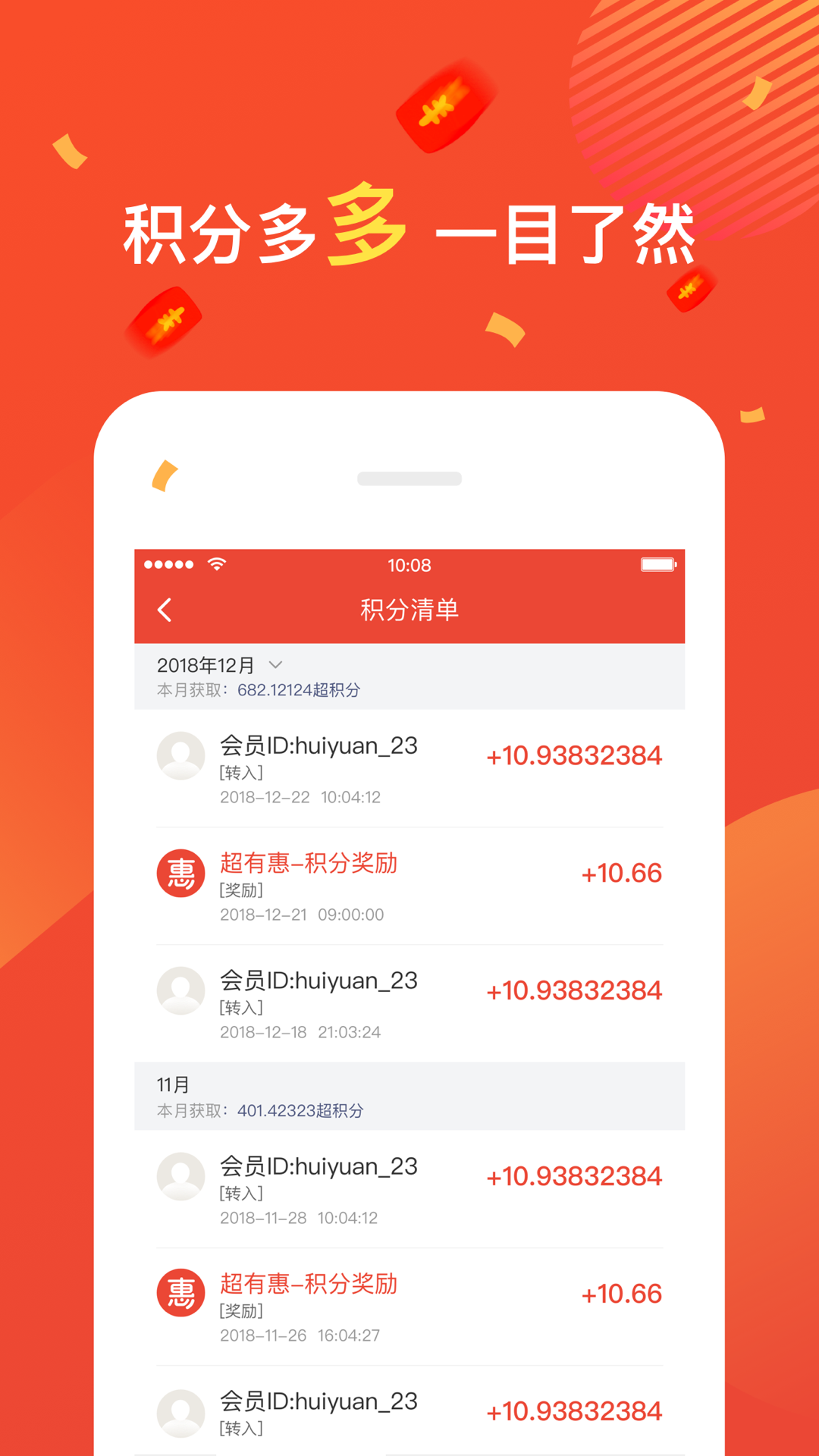 超有惠是一款专为消费者打造的智能购物神器APP。通过这款应用,用户可以在遍布全国的加盟店消费时轻松累积积分,当积分达到指定额度后即可兑换各类精美礼品。平台还定期推出限时折扣、会员专享、节日特惠等丰富活动,让您的每一笔消费都物超所值。操作界面简洁直观,无论是积分查询还是礼品兑换都一目了然。现在下载注册即可获得新人礼包,快来加入超有惠,开启您的智慧消费新体验吧!