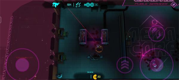 朋克大暴走中文版是一款充满未来科技感的双摇杆射击游戏,也被称为NeonChrome。游戏以赛博朋克为主题,采用紫色与蓝色的霓虹色调,搭配极简的UI设计和充满科技感的建筑场景,营造出独特的电子世界氛围。玩家将置身于高科技的虚拟战场中,通过简单粗暴的射击玩法,一层层突破敌人防线。游戏采用上帝视角,让玩家能够全局掌控战场局势,同时融入策略性玩法,比如利用可破坏的掩体进行战术对抗。每次死亡后角色会变得更强大,这种成长机制大大提升了游戏的重复可玩性。