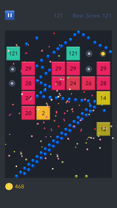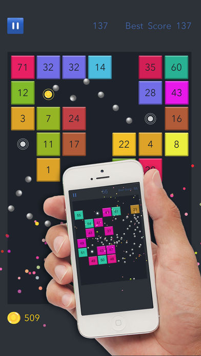 4、当数字减到0时,砖块就会被打破,随之消失;消除砖块会获得分数奖励,连续消除还能触发连击加成;